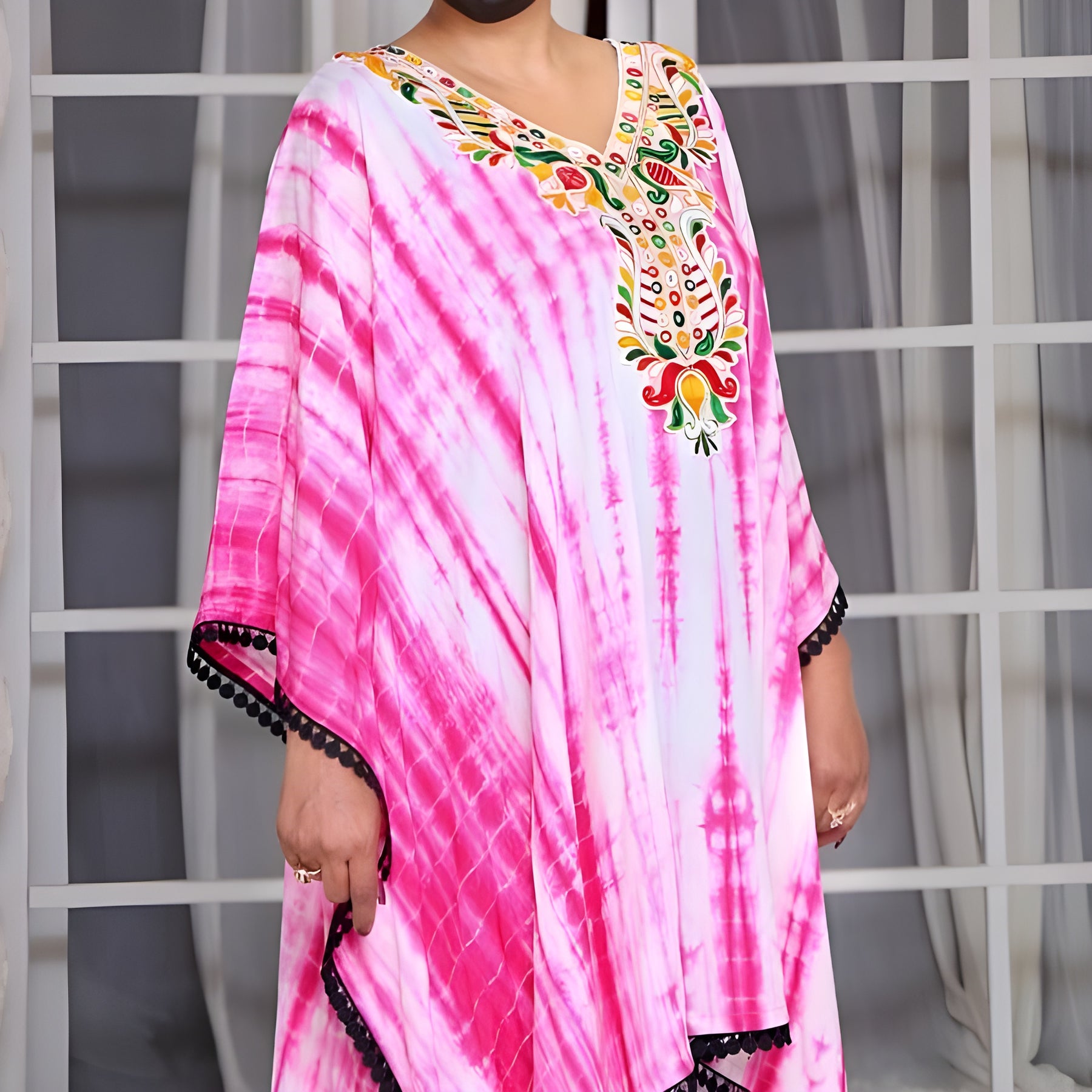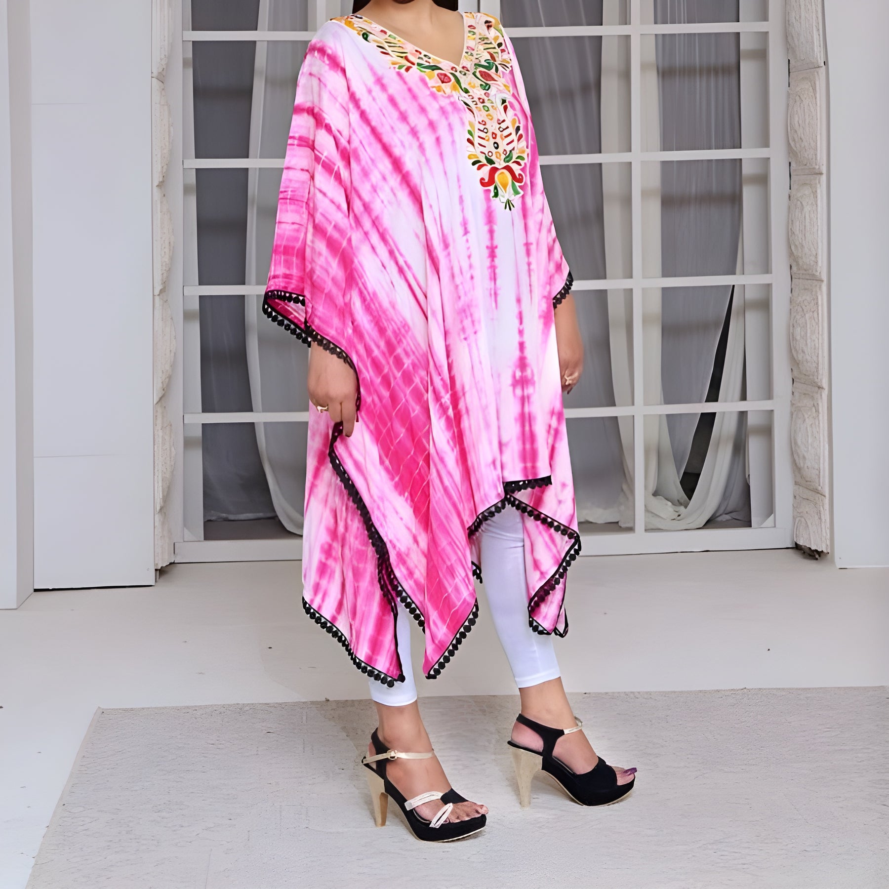 Tie-Dye White Pink Women Caftan or Poncho for Resort and Beach Wear
